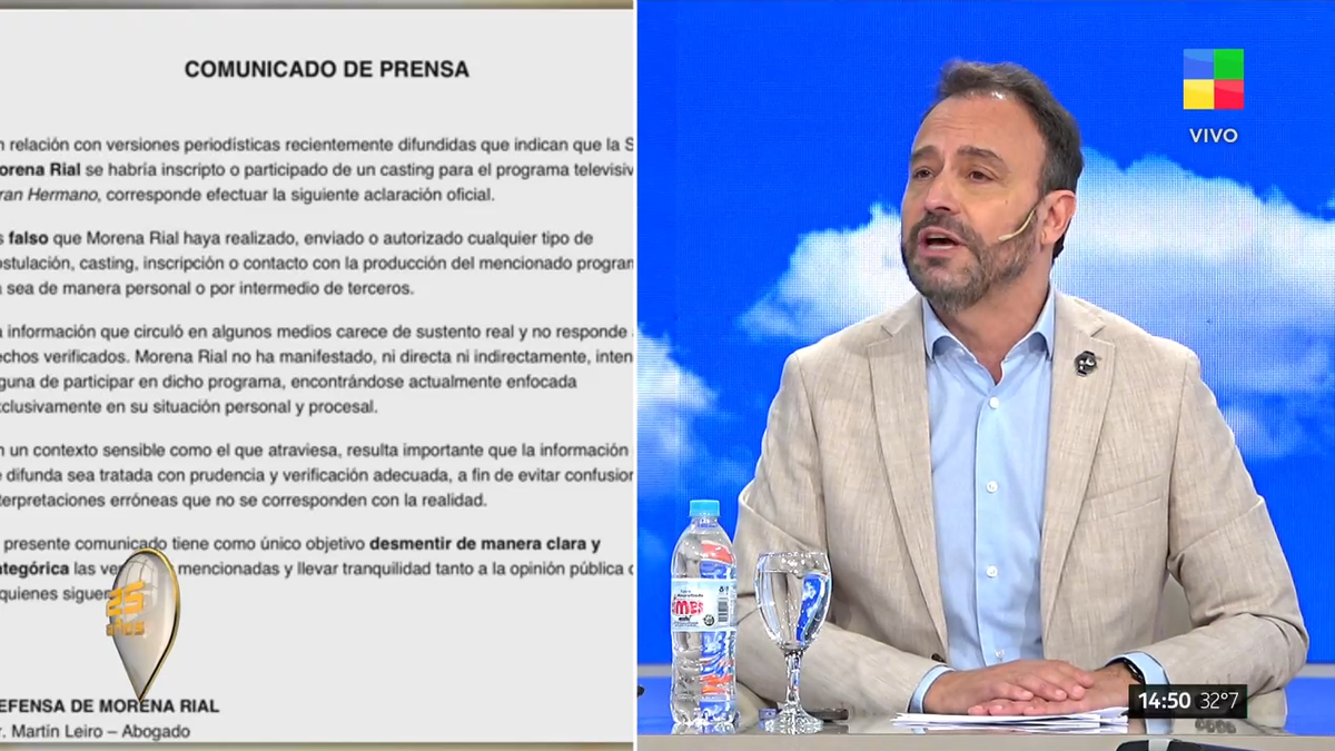 "La información que circuló en algunos medios carece do sustento real y no responde a hechos verificados. Morena Rial no ha manifestado, ni directa ni indirectamente, intención alguna de participar en dicho programa, encontrándose actualmente enfocada exclusivamente en su situación personal y procesal", continúa informando el descargo de la influencer escrito por su actual representante legal, dado que Alejandro Cipolla decidió apartarse del caso.
