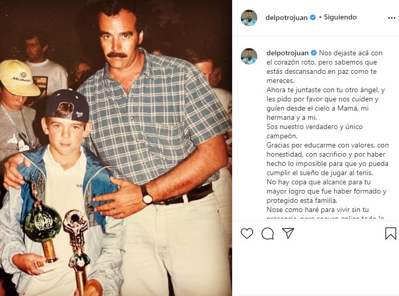 "Nos dejaste acá con el corazón roto, pero sabemos que estás descansando en paz como te mereces. Ahora te juntaste con tu otro ángel, y les pido por favor que nos cuiden y guíen desde el cielo a Mamá, mi hermana y a mí", escribió Del Potro.