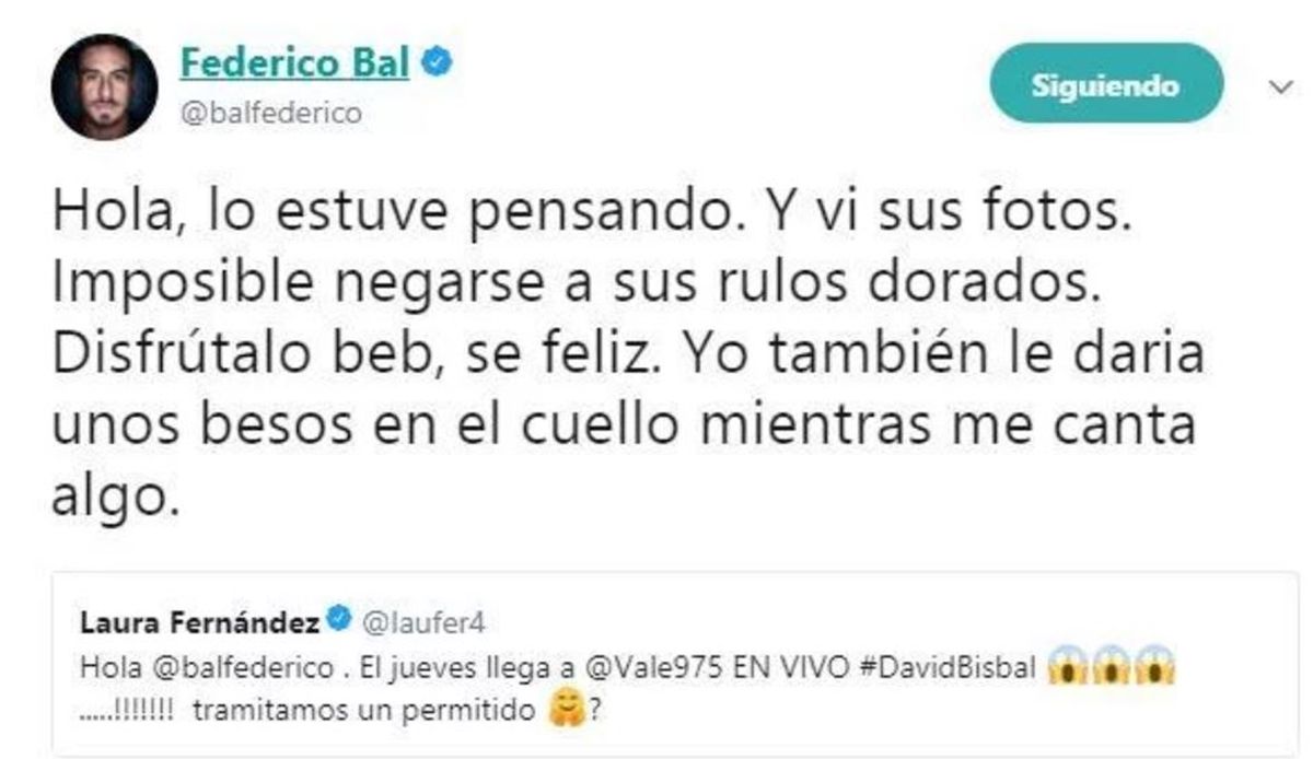 Días atrás, en el marco de los preparativos para lo que finalmente fue su primera gran entrevista radial, Laurita Fernández no ocultó su "admiración" por David Bisbal y públicamente, a través de las redes, le pidió a Fede Bal- su pareja- un "permitido" con el famoso cantante.