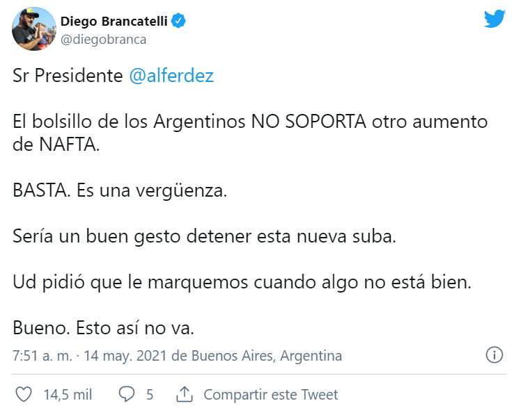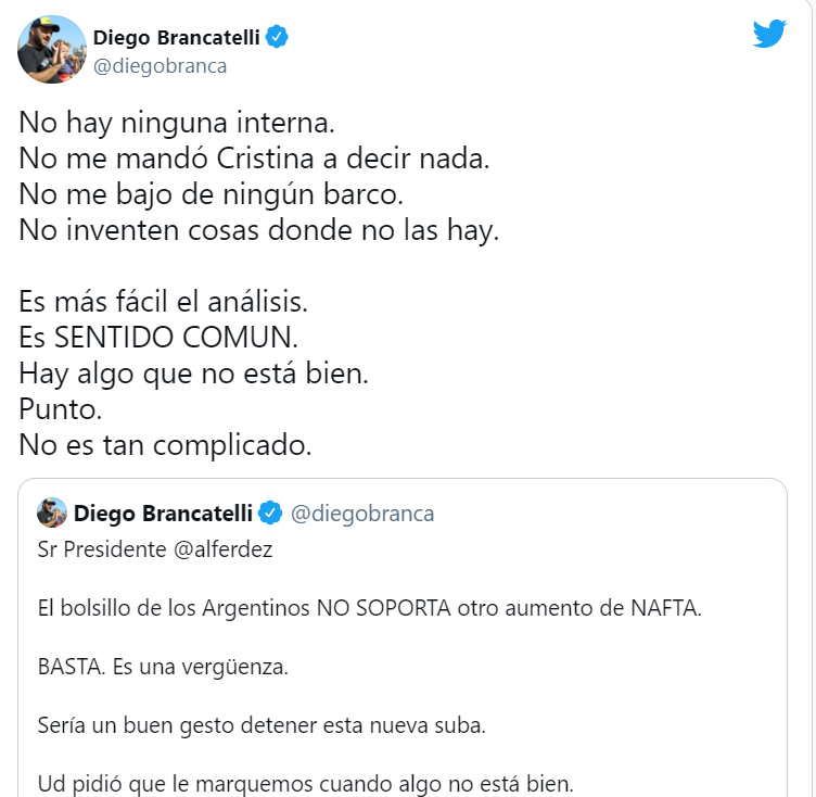 Diego Brancatelli en Twitter