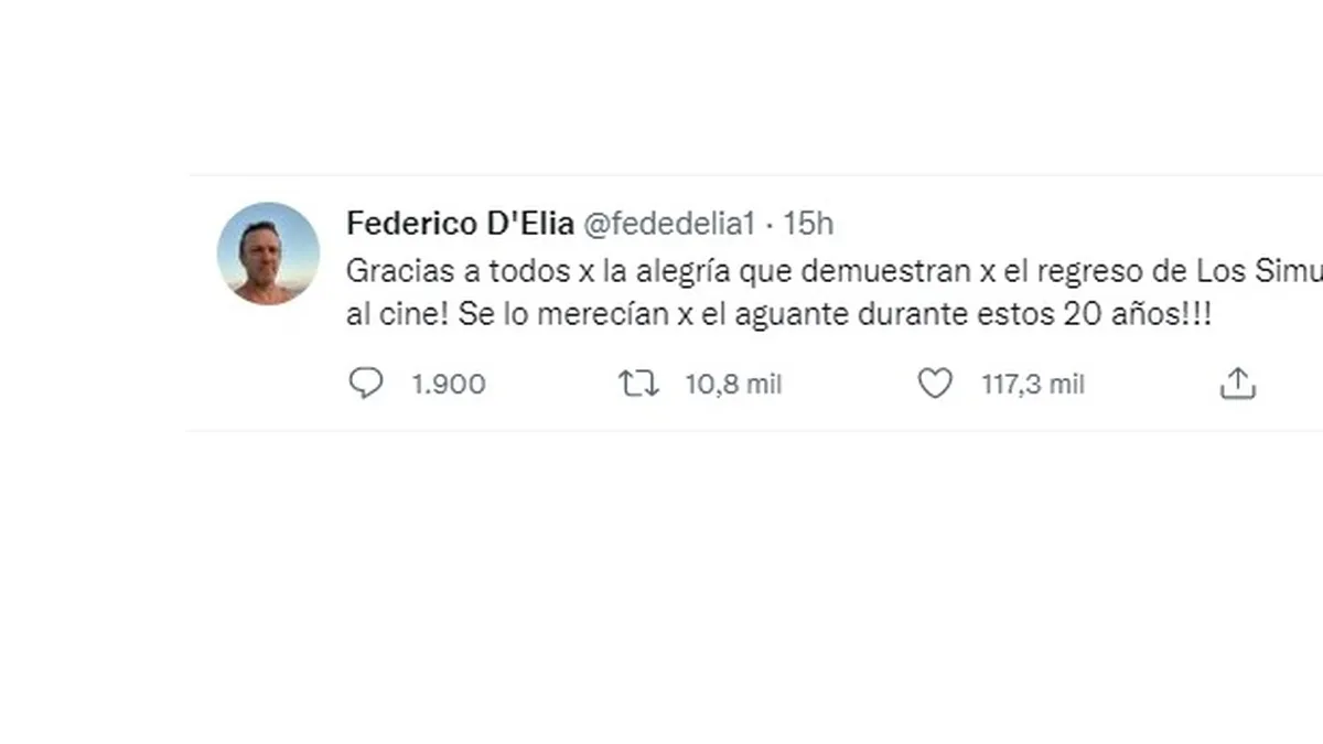 "Gracias a todos por la alegría que demuestran por el regreso de Los Simuladores al cine! Se lo merecían por el aguante durante estos 20 años!!!", expresó feliz.