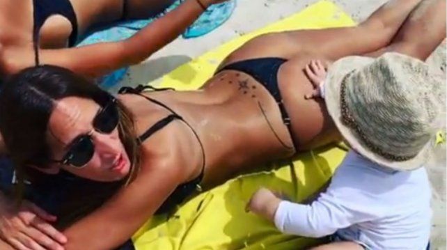 El hijo de Flavio Mendoza quedó "enloquecido" con la cola de una turista argentina en las playas de Miami, Estados Unidos, donde están hace unos días.