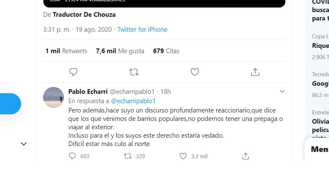 A ver esto, Echarri eligió de nuevo Twitter para contestarte.