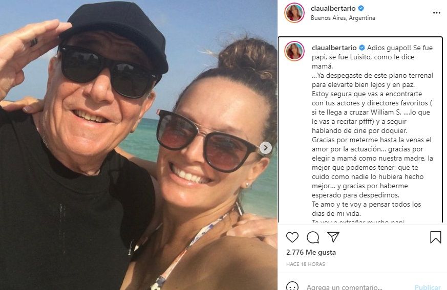 Y cerró: "Te amo y te voy a pensar todos los días de mi vida. Te voy a extrañar mucho papi… Hasta siempre!!! Que dios te tenga en la gloria. LUIS ALBERTARIO 29/05/21".