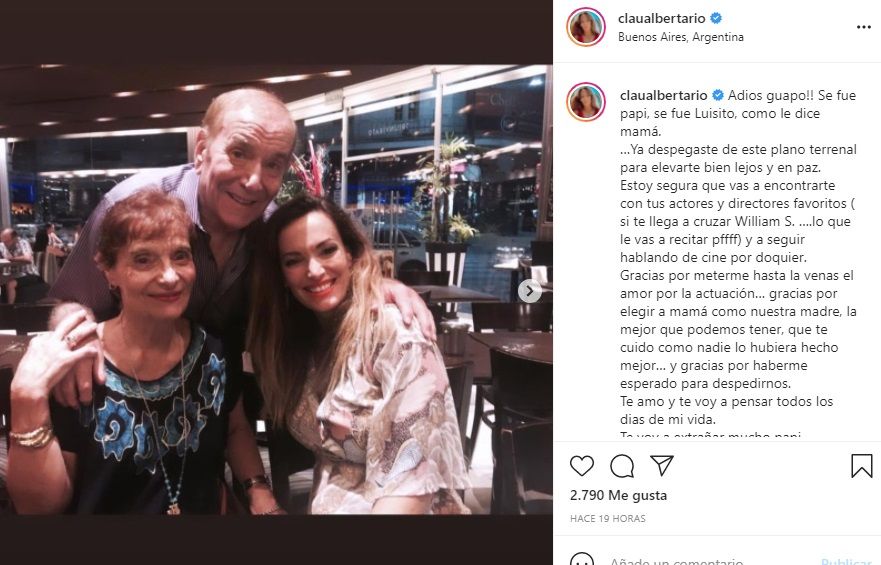 Claudia Albertario está pasando por un momento de profundo dolor por la muerte de su padre, Luis, quien falleció por una insuficiencia cardíaca.