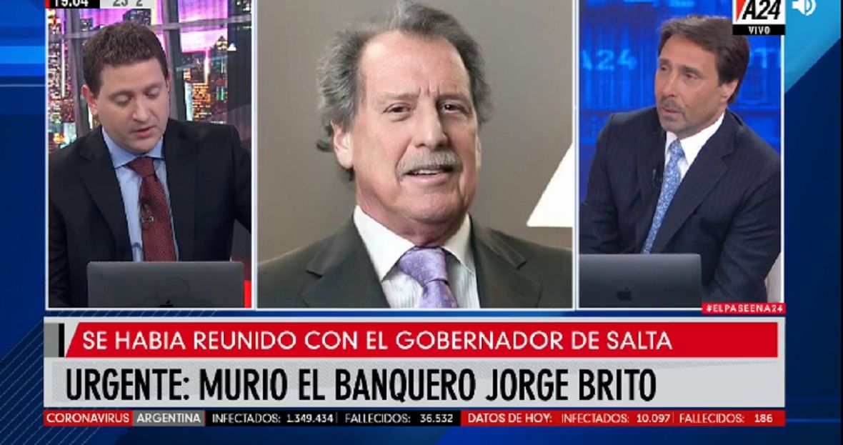 "Consternado, la muerte de Jorge Brito me ha pegado, era un hombre que yo quería fuertemente, de una larga relación hace años con su familia de amistad", indicó el conductor.