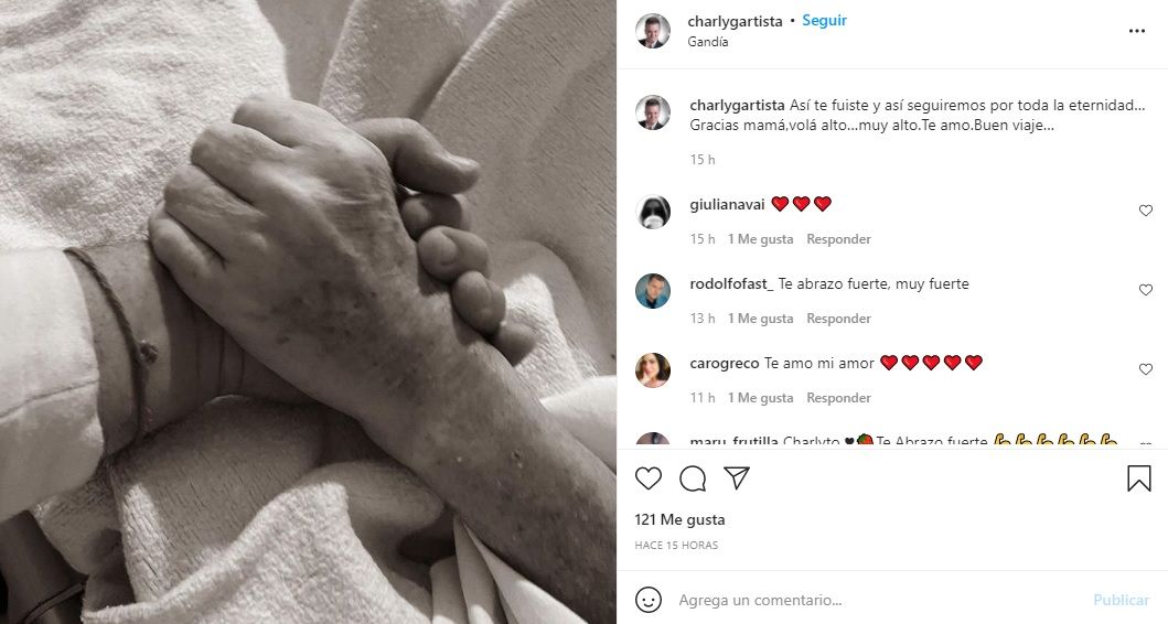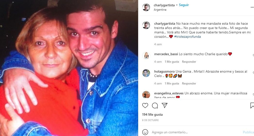 "No hace mucho me mandaste esta foto de hace treinta años atrás… No puedo creer que te fuiste… Mi segunda mamá… Volá alto Mir!! Que suerte haberte tenido.Siempre en mi corazón… #tristezaprofunda", reflejó conmovido en las redes.