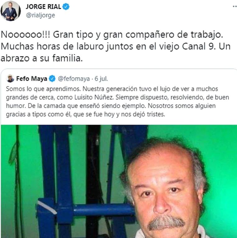 "No puedo creerlo. QEPD Luis. Genio, bueno, amoroso", indicó Fernández.
