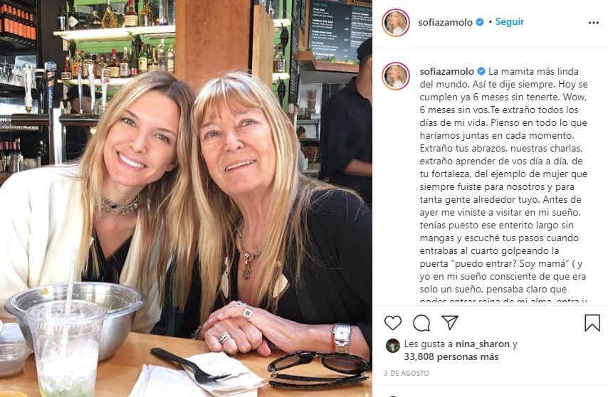 "Lo de mamá fue y es terrible para mí y mis hermanos. Mi mamá era todo: una madre muy presente, nuestro pilar. Ella, además, había tenido una vida muy dura. Perdió a su mamá a los nueve años, cuando la atropelló un tren y a mi hermano Fede, de 16 años, en un accidente de moto. Y así y todo salió adelante y siempre fue positiva", remarcó Sofía.