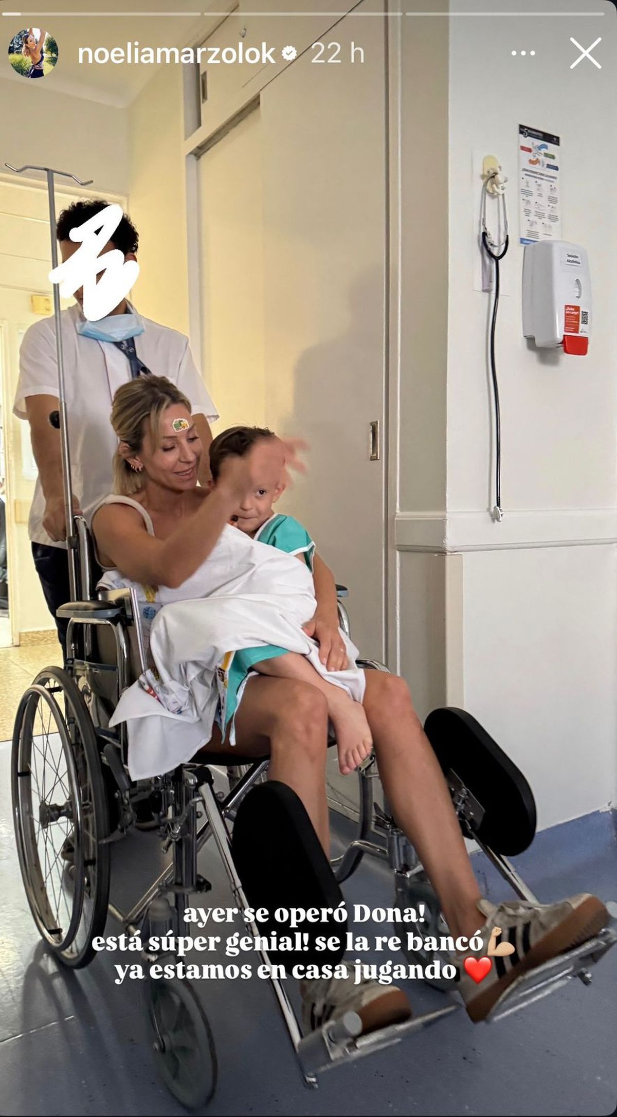 Así las cosas, tras el paso del pequeño por el quirófano, Marzol se mostró en sus redes saliendo de la internvención con el pequeño a upa mientras eran trasladados en silla de ruedas. "Ayer se operó Dona! Está súper genial! Se la re bancó. Ya estamos en casa jugando", explicó sobre la imagen compartida en sus Instagram Stories.