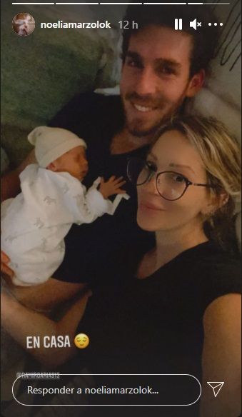 Noelia y Ramiro compartieron desde las redes la primera imagen donde se ve bien el rostro del pequeño. "Así estamos, felices y cansados", expresó en las redes al visitar al pequeño.