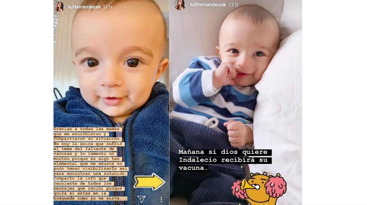 Luli Fernández se mostró muy preocupada por el faltante de las vacunas contra la meningitis, por lo cual no puede brindársela a su hijo Indalecio, de cinco meses, fruto de su matrimonio con Cristian Cúneo Libarona.