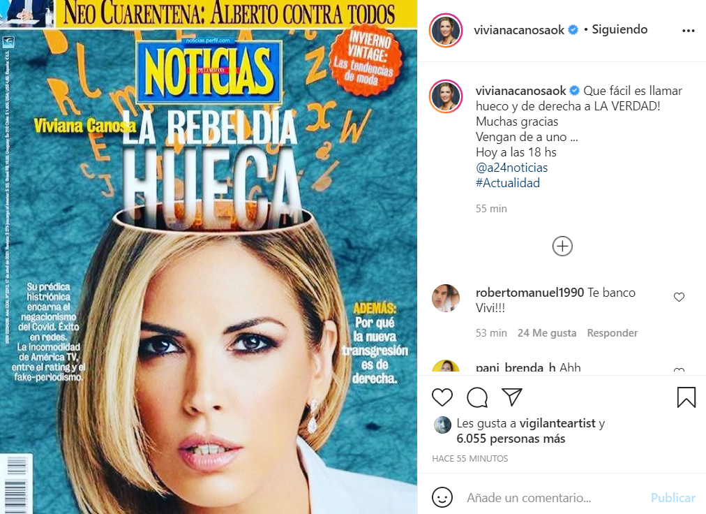 Por supuesto, la conductora no se quedó callado ante esa nota donde Zunino afirma: "Me dirán que ocuparse de Viviana Canosa no vale la pena o que es poco serio o que me gusta el periodismo de periodistas… y puede ser, pero la ex chimentera de los pelos colorados tiene un programa que puede ver cualquier desprevenido, ahora se dedica a la política y hace el pase a las 8 de la noche con un periodista de los considerados “serios” como Luis Novaresio. No sería de extrañar que, en un futuro no muy lejano, Canosa se consolide como integrante del llamado círculo rojo por sus posturas cada vez más desencajadas: otros que hicieron ese trayecto antes que ella. Canosa juega a ser una especie de petit fille fatal de aquella Doña Rosa inexistente pero tan estereotípica con la que interactuaba el viejo Bernardo Neustadt. Lástima que una mujer de estos tiempos que se pretende editorialista busque agrupar con más efusividad y desparpajo que ideas a esa parte de la audiencia que sólo busca encontrar un espejo donde ver reflejados sus más bajos instintos".