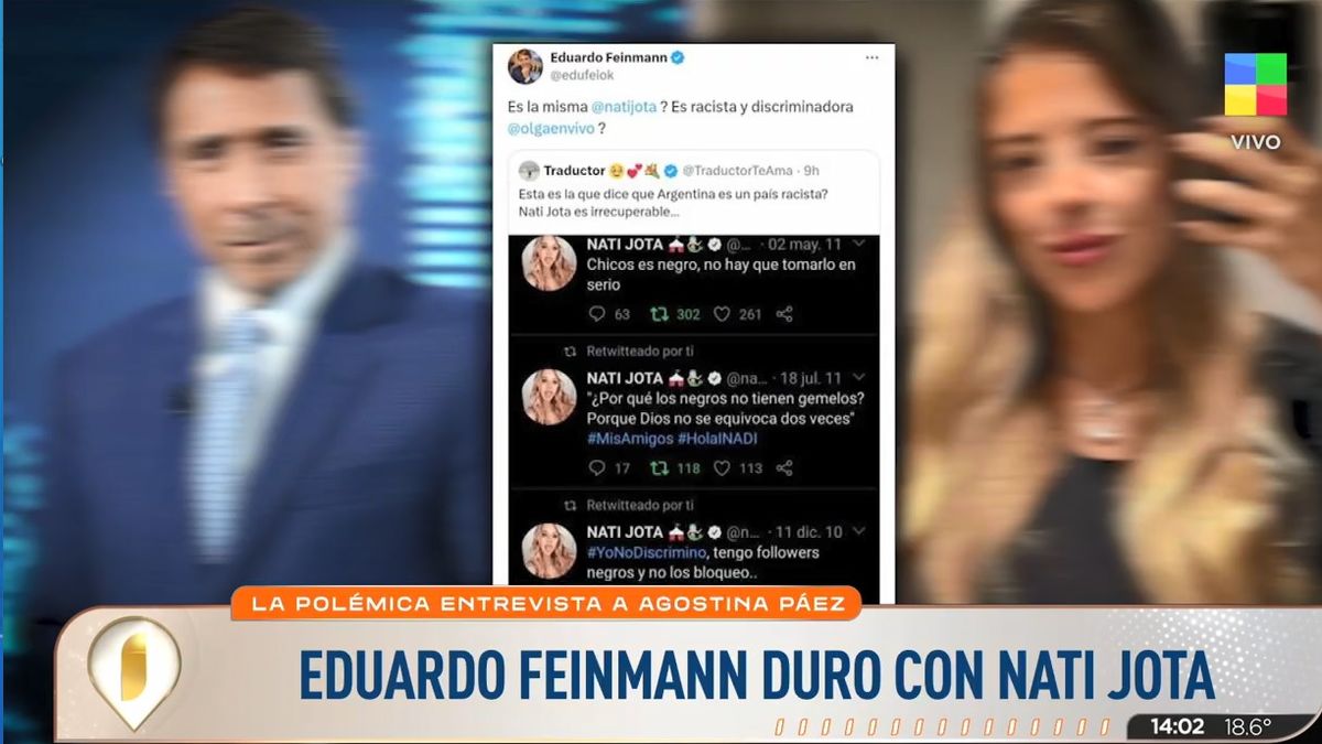Eduardo Feinman cruzó con todo a Nati Jota por la nota con Agostina Páez: "¿Es racista y discriminadora?"