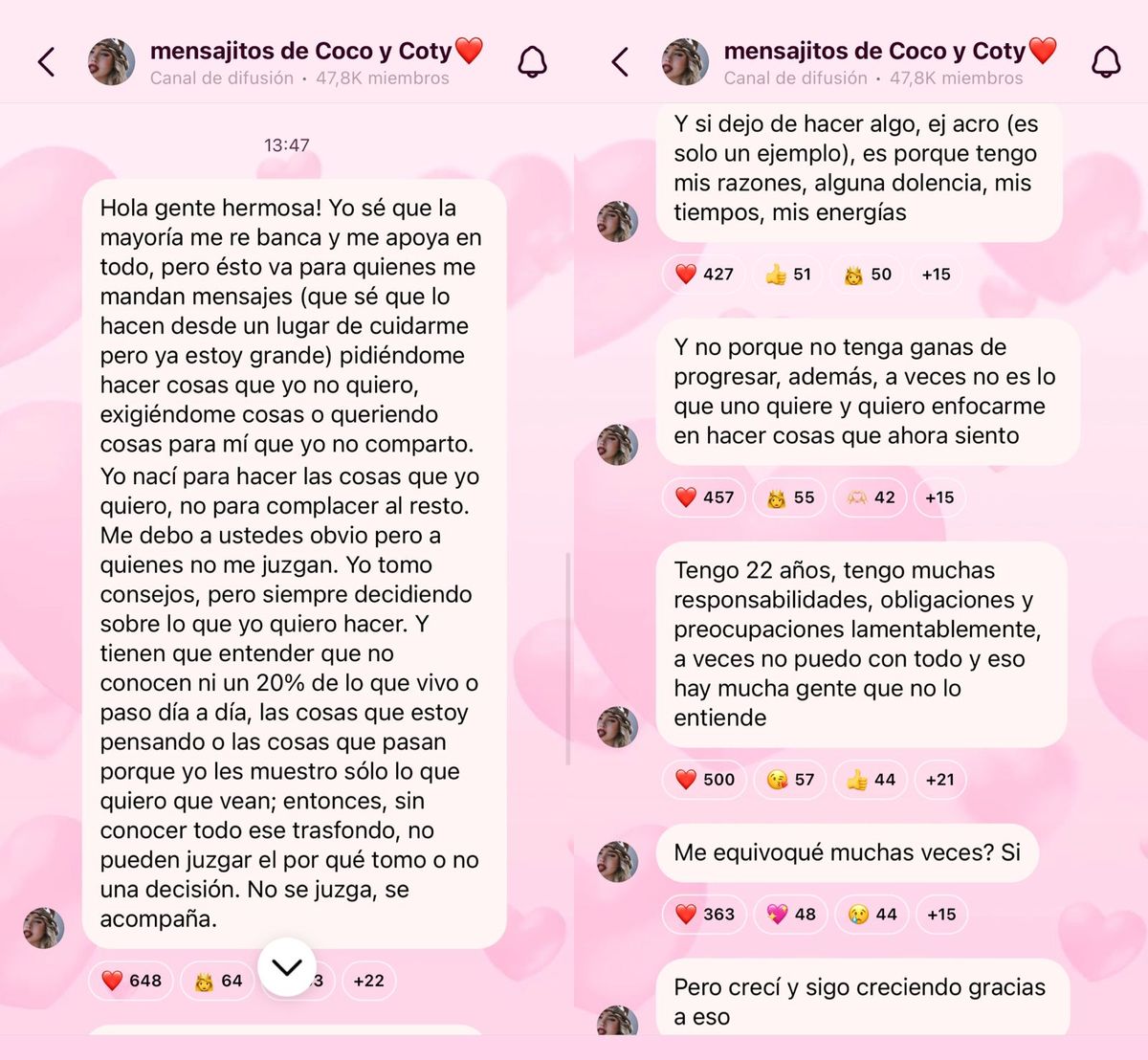 “Yo sé que la mayoría me re banca y me apoya en todo, pero esto va para quienes me mandan mensajes pidiéndome hacer cosas que yo no quiero, exigiéndome o queriendo cosas para mí que yo no comparto”, aclaró en principio.