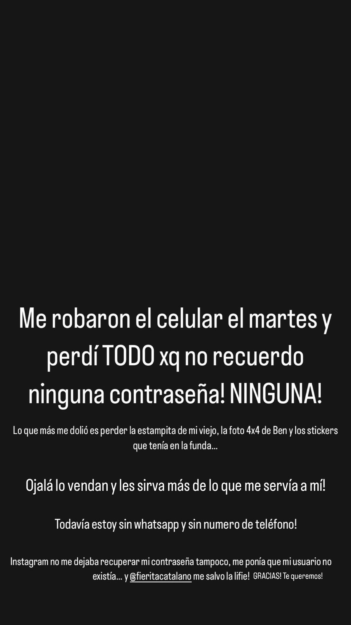 “Ojalá lo vendan y les sirva más de lo que me servía a mí. Todavía estoy sin WhatsApp y sin número de teléfono”, les explicó a sus seguidores, amigos y familiares.