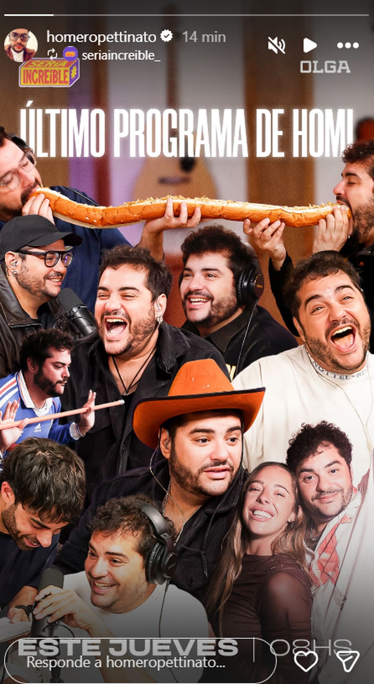 Horas más tarde, Pettinato reforzó su despedida en redes sociales. En sus historias de Instagram compartió una publicación de la cuenta oficial de Sería Increíble, donde se veía un collage con distintos momentos de su paso por el ciclo. La imagen llevaba la frase: "Último programa de Homi".
