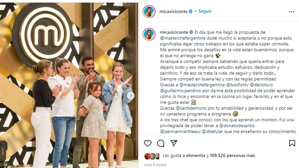 Tras la consagración, Mica Viciconte, quien está a punto de dar a luz a su primer hijo Luca, realizó un emotivo balance de su paso por el programa y lo compartió en Instagram.