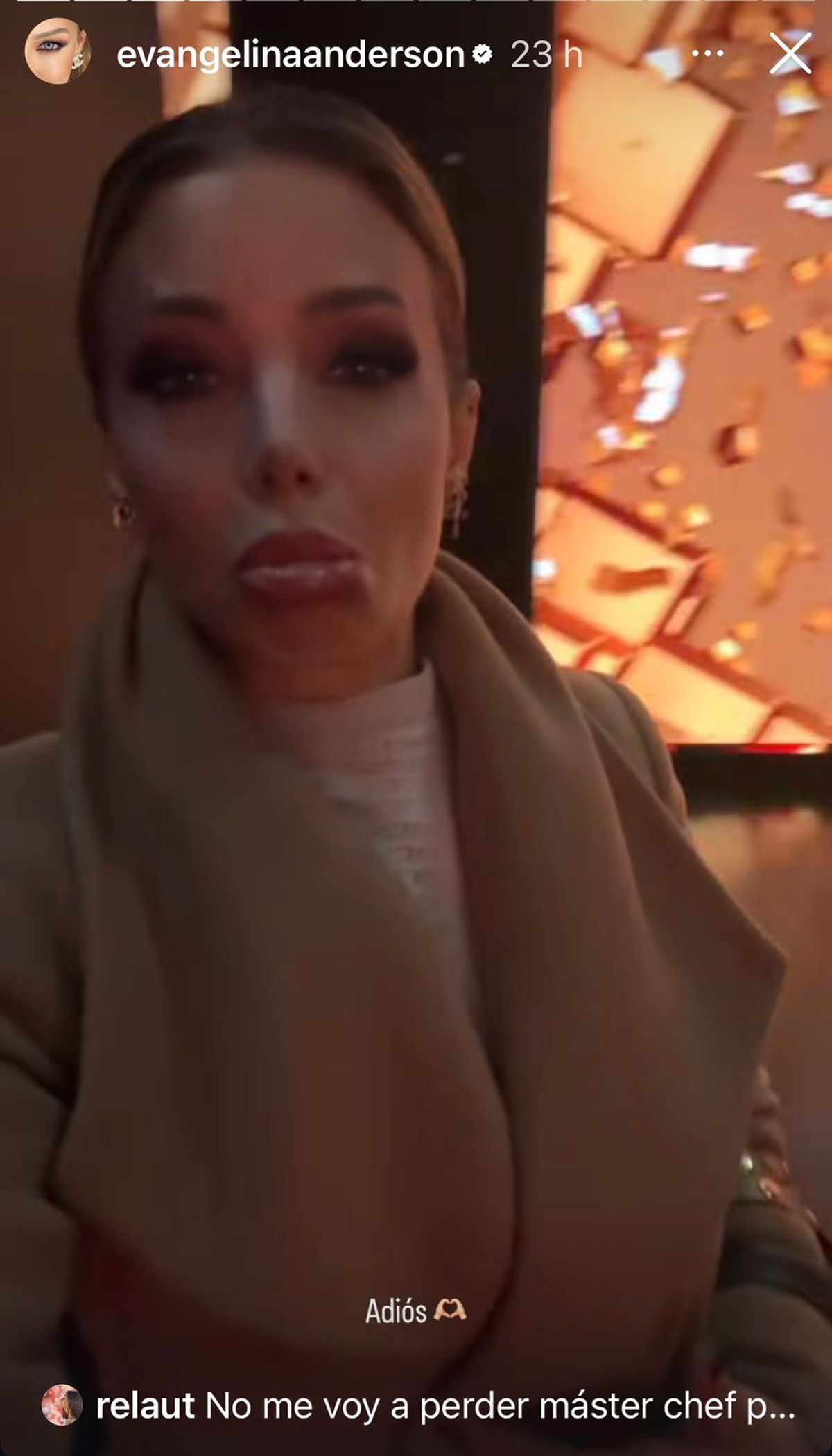Dentro de sus muchas historias virtuales de Instagram, Evangelina no sólo compartió un video del estudio de Los 8 escalones en penumbras y con un emoji de un corazón roto, sino que en un siguiente posteo se mostró en primer plano con cara de tristeza en el que se limitó a escribir la palabra "adiós".
