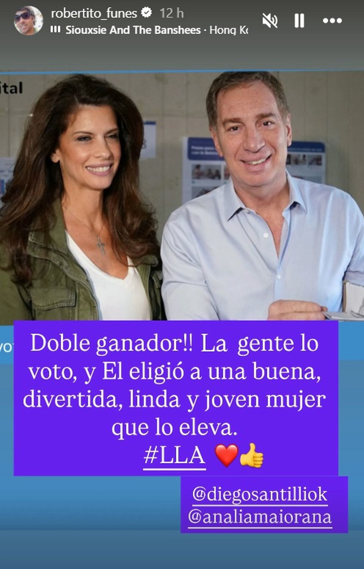 A través de sus historias de Instagram, el periodista publicó una imagen de Diego Santilli, ex pareja de Pazos, junto a su actual esposa, Analía Maiorana, y la foto fue acompañada por una frase que no pasó desapercibida: “¡¡Doble ganador!!”.