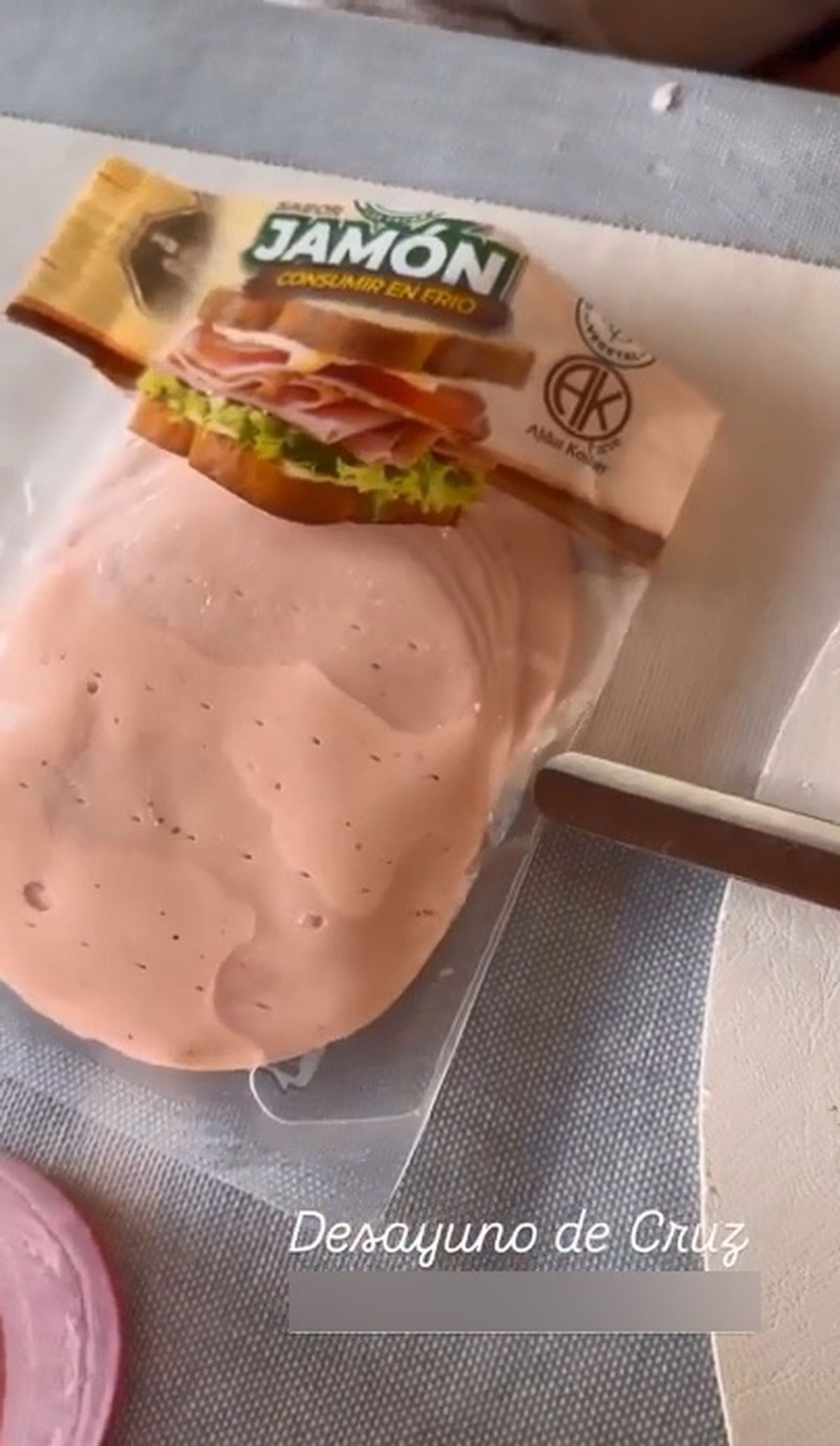 De acuerdo a las imágenes que compartió la esposa de Manu Urcera en sus Instagram Stories, puede apreciarse que en realidad ese alimento está hecho en base a proteína de arveja, y de jamón lo que tiene es solamente el sabor.