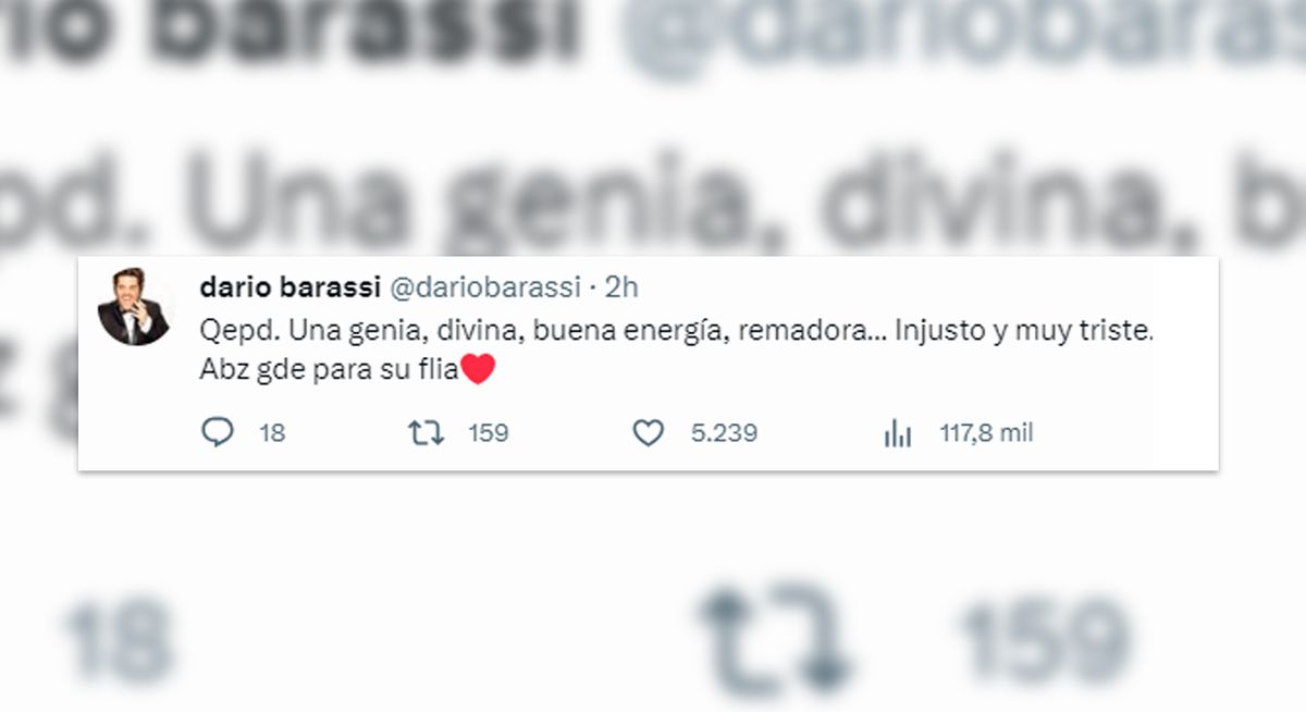 Por su parte, Darío Barassi escribió: "Qepd. Una genia, divina, buena energía, remadora… Injusto y muy triste. Abrazo grande para su familia".