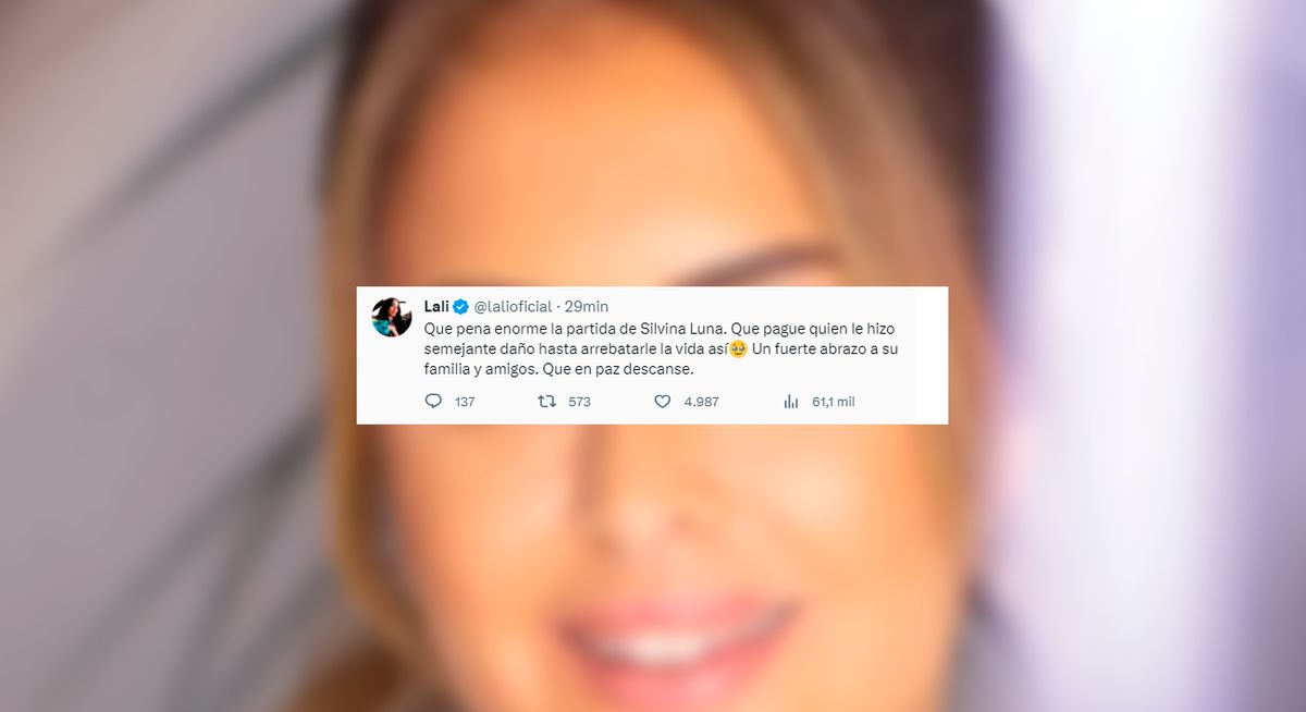 Lali Espósito también se mostró afectada por la triste noticia: "Que pena enorme la partida de Silvina Luna. Que pague quien le hizo semejante daño hasta arrebatarle la vida así".