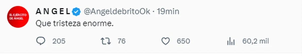 El periodista Ángel de Brito fue uno de los primeros famosos en pronunciarse por la partida de Silvina. "Que tristeza enorme", escribió el conductor de LAM en Twitter.