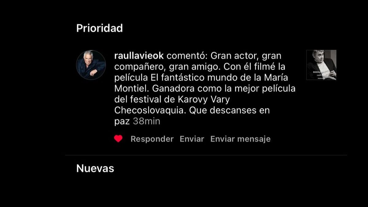 Y el Negro Lavié expresó: "Gran actor, gran compañero, gran amigo. Con él filmé la película El fantástico mundo de la María Montiel. Ganadora como la mejor película del festival de Karovy Vary Cheqoslavaquia. Que descanse en paz".