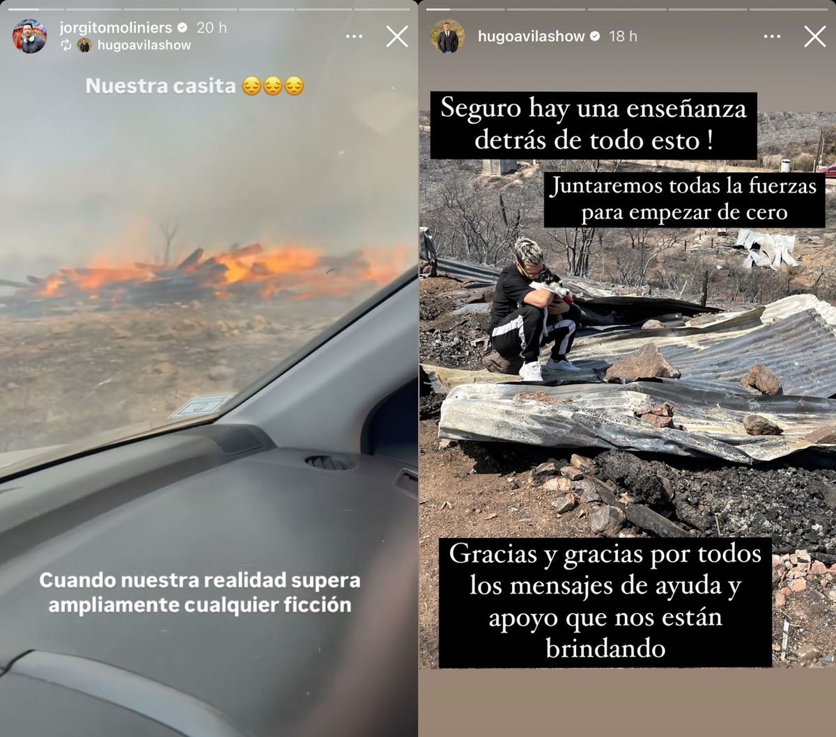 Jorgito Moliniers y Hugo Ávila mostraron en sus redes sociales las impactantes imágenes de su casa siendo consumida por los incendios.