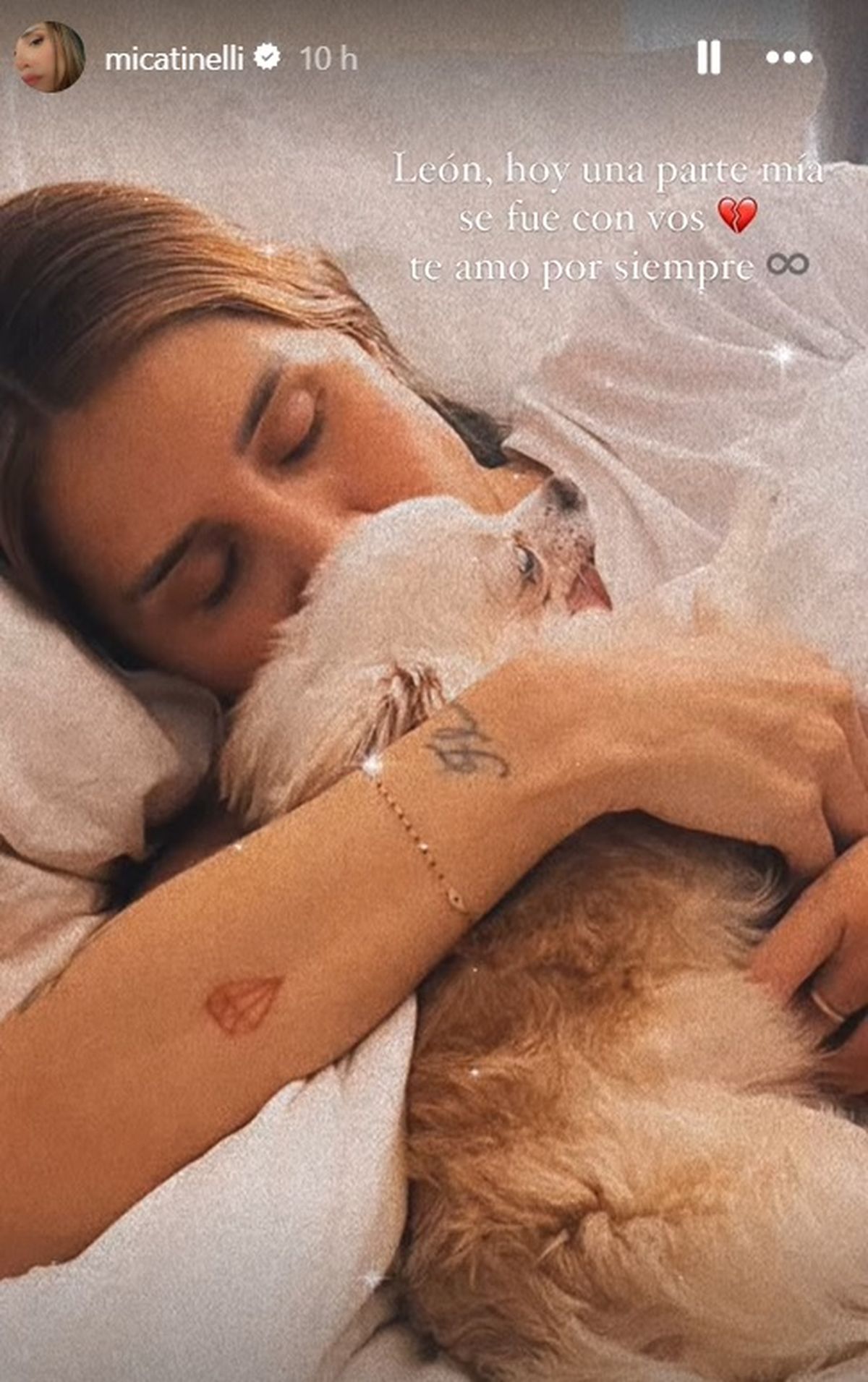 En las últimas horas, Micaela Tinelli compartió un doloroso mensaje en las redes sociales al contar de la muerte de su perro León, compañero de vida de muchos años.