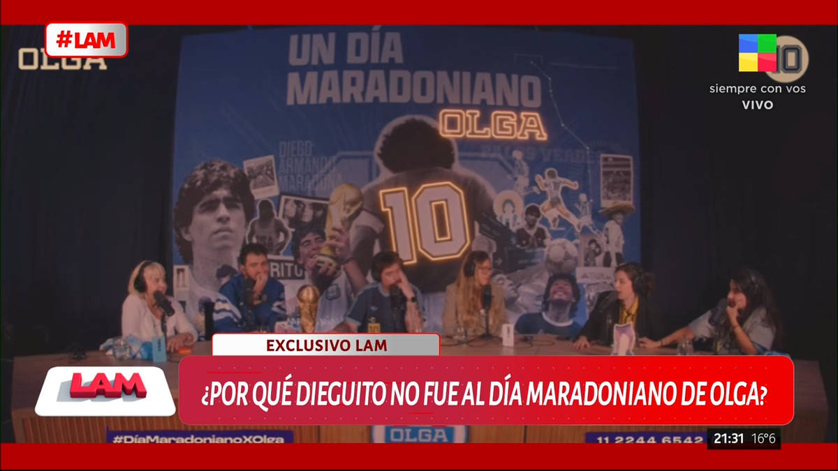 En tanto, tras exponer toda la situación e incluso compartir una entrevista a Migue Granados -responsable de Olga-, quien se desentendió del tema diplomáticamente, Ángel de Brito insistió en que Dalma y Gianinna no tuvieron injerencia alguna en relación a los invitados del evento organizado por el canal de stream para recordar a Diego Armando Maradona el día que hubiese cumplido 65 años.