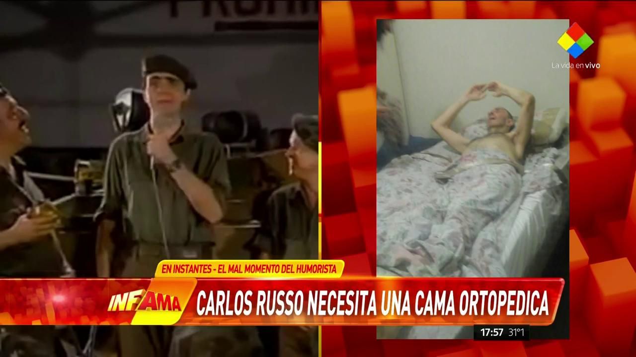 De la mano de la imitación, se consagró como uno de los grandes del humor de la década del 80. Inclusive, muchos lo recuerdan como el "dueño" de una galería de más de 100 personajes a los que lograba reproducir de un modo sorprendente. Sin embargo, Carlos Russo, de él se trata, vive una realidad completamente alejada de los éxitos: enfermo y abandonado, necesita ayuda para sobrellevar un cáncer de pulmón y en los huesos que padece desde hace un tiempo.