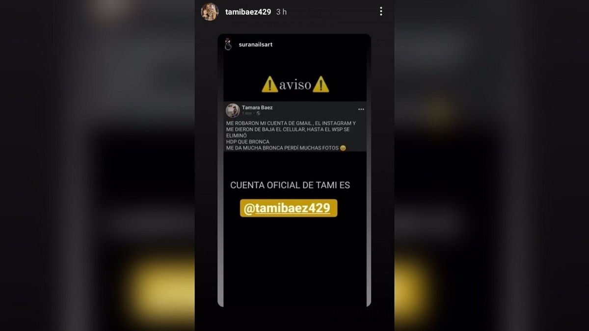En su nueva cuenta de Instagram, en donde recolectó cerca de 200 mil seguidores, Tamara Báez aseguró que se trata de un ciberdelito y que le robaron la cuenta. Además, desesperadamente aseguró que quiere recuperarla pero no sabe por dónde comenzar la negociación.