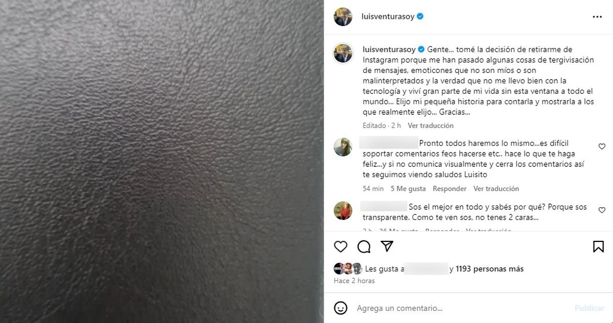 En la mañana de este jueves, Luis Ventura sorprendió a sus más de 200 mil seguidores de Instagram anunciando el cierre de su cuenta en dicha aplicación y detalló contundente los motivos de su firme determinación.