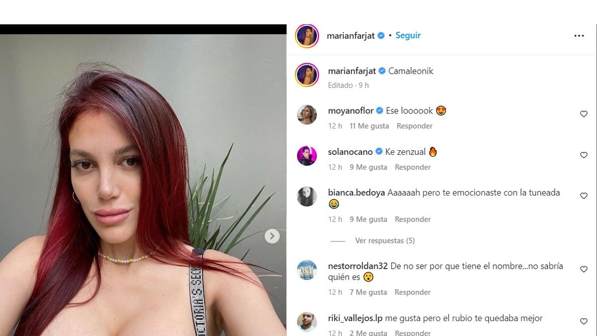 Marian, quien en el reality mantuvo un largo y explosivo romance con Brian Lanzelotta, pasó por la peluquería y estrenó corte y color: "Camaleonik", expresó con su cabellera más rojiza.