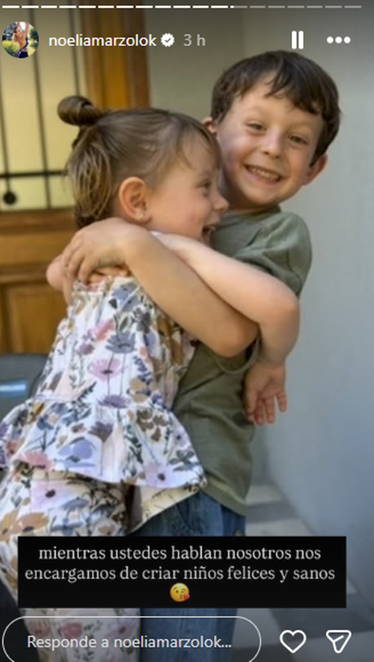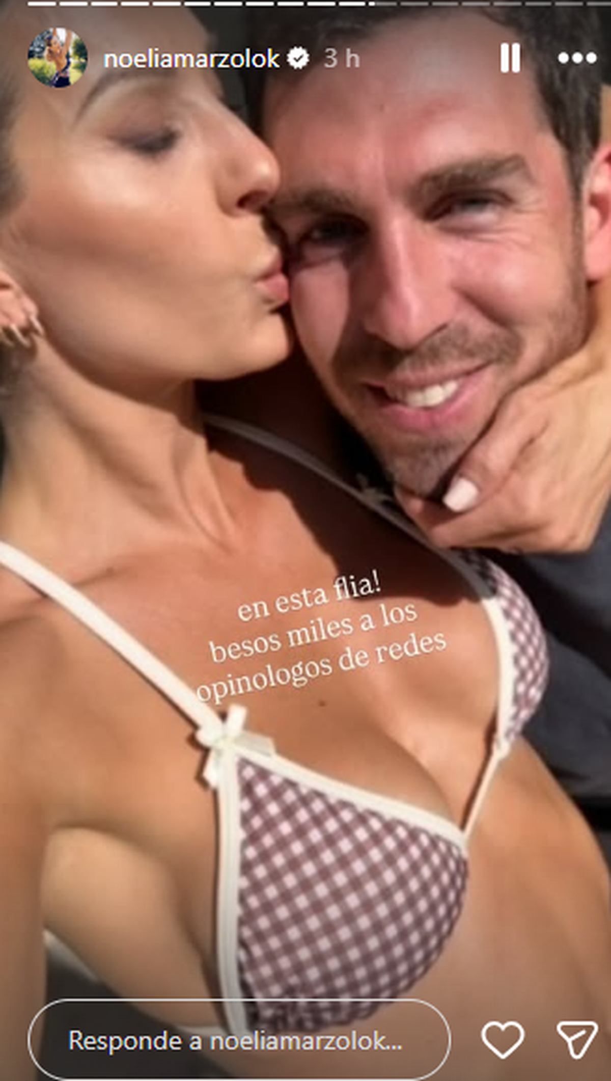 Más tarde, Noelia Marzol fue más directa e hizo un descargo en s cuenta de Instagram tras la polémica que generó la publicación de un video en el que su marido, Ramiro Arias, le besa el pecho mientras están en la pileta. Lo que llamó la atención de los usuarios es que en el lugar también está Alfonsina, la hija de ambos.