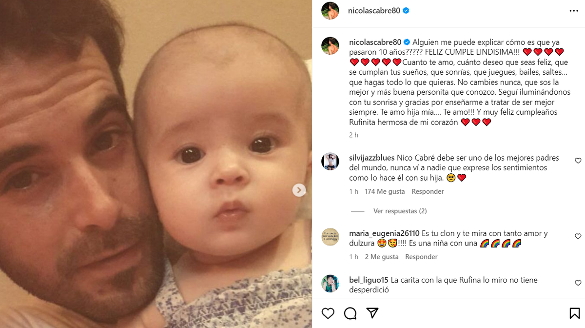 Rufina, fruto de la relación de Nicolás Cabré y la China Suarez, cumplió 10 años el día de hoy y su papá decidió compartir un emotivo posteo en sus redes sociales para celebrar la ocasión con puras palabras de amor.