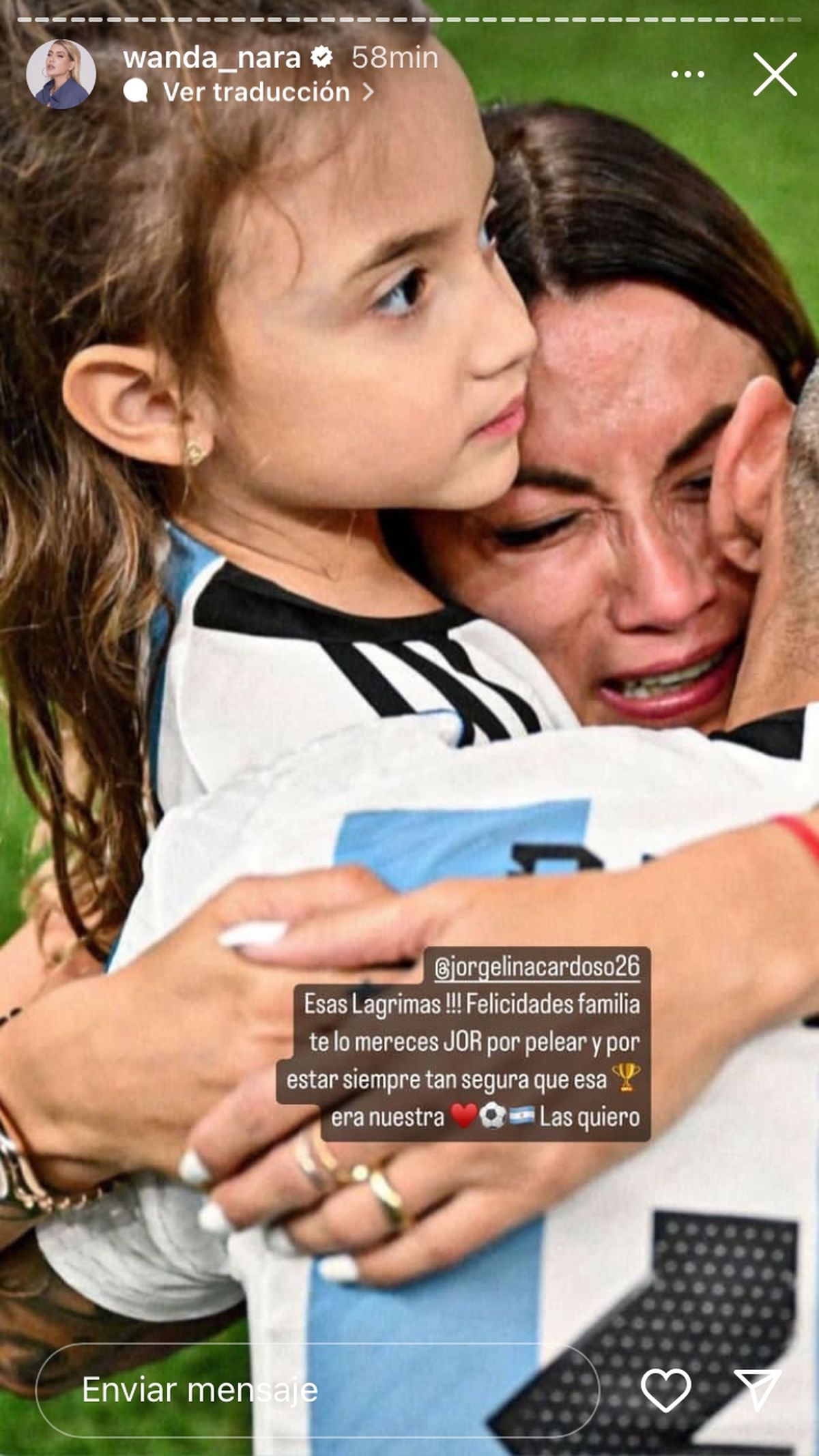 "Esas lágrimas!!! Felicidades familia te lo merecés JOR por pelear y por estar siempre tan segura que esa copa era nuestra. Las quiero", cerró Wanda, acompañando la publicación con emojis de corazón.
