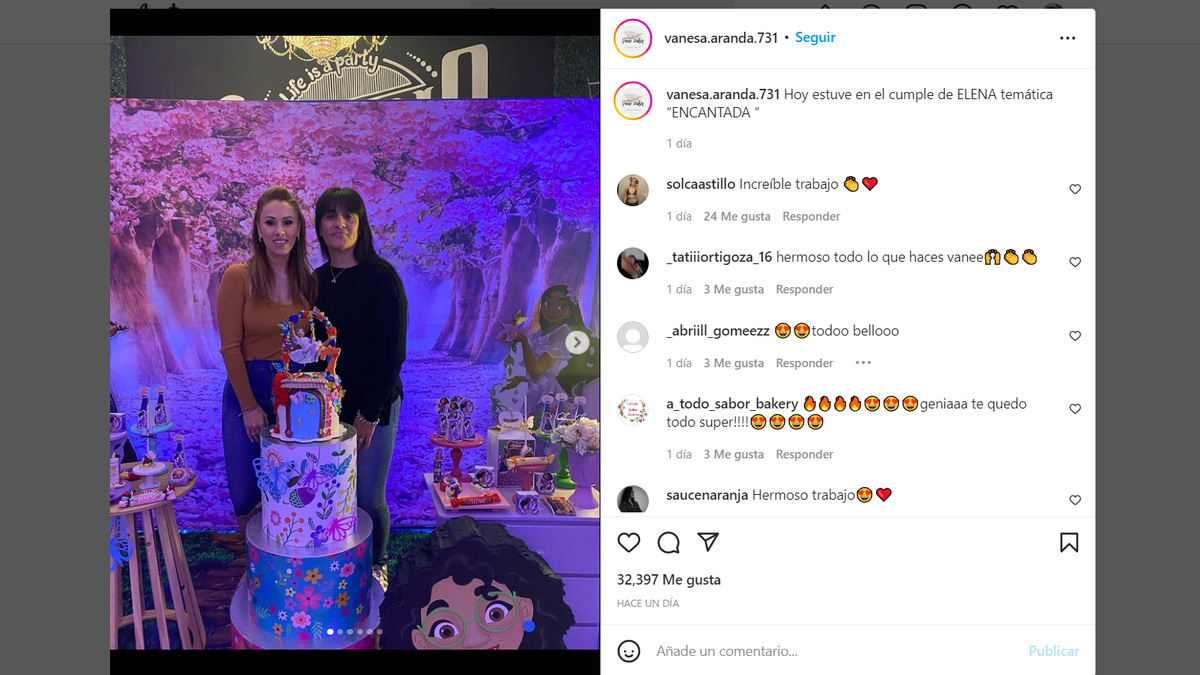 "Hoy estuve en el cumple de Elena, temática ‘Encantada’", expresó la mamá de El Noba en la descripción de la publicación.