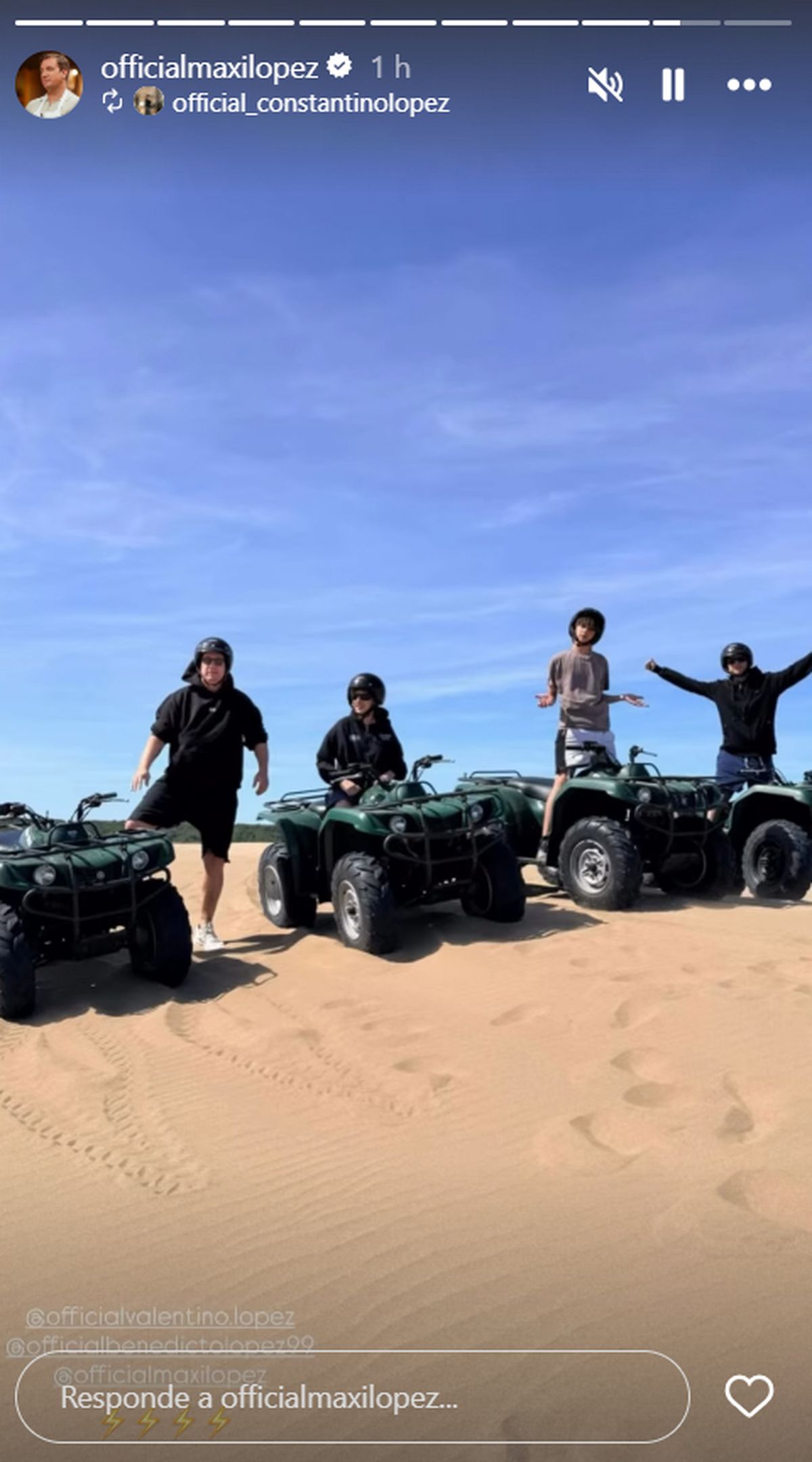 Las postales que subió a sus historias de Instagram reflejan la alegría del encuentro: se los ve almorzando en un parador frente al mar y también divirtiéndose en cuatriciclo, una actividad que arrancó entusiasmo en los tres hermanos.