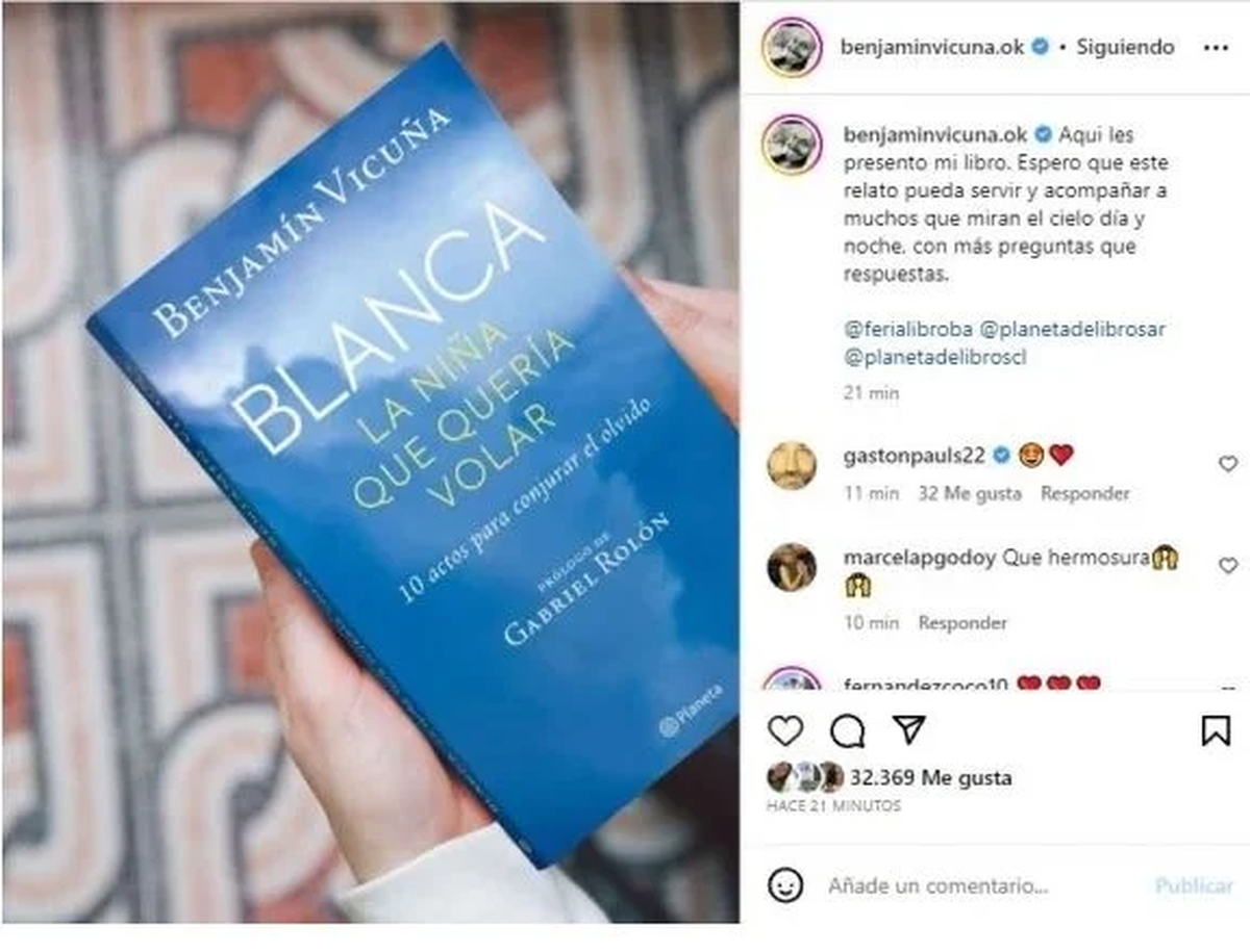 Con "Blanca, la niña que quería volar, 10 actos para conjurar el olvido", Benjamín busca ayudar a las personas a transitar el duelo y "acompañar a muchos que miran el cielo día y noche, con más preguntas que respuestas", como dijo en su Instagram.