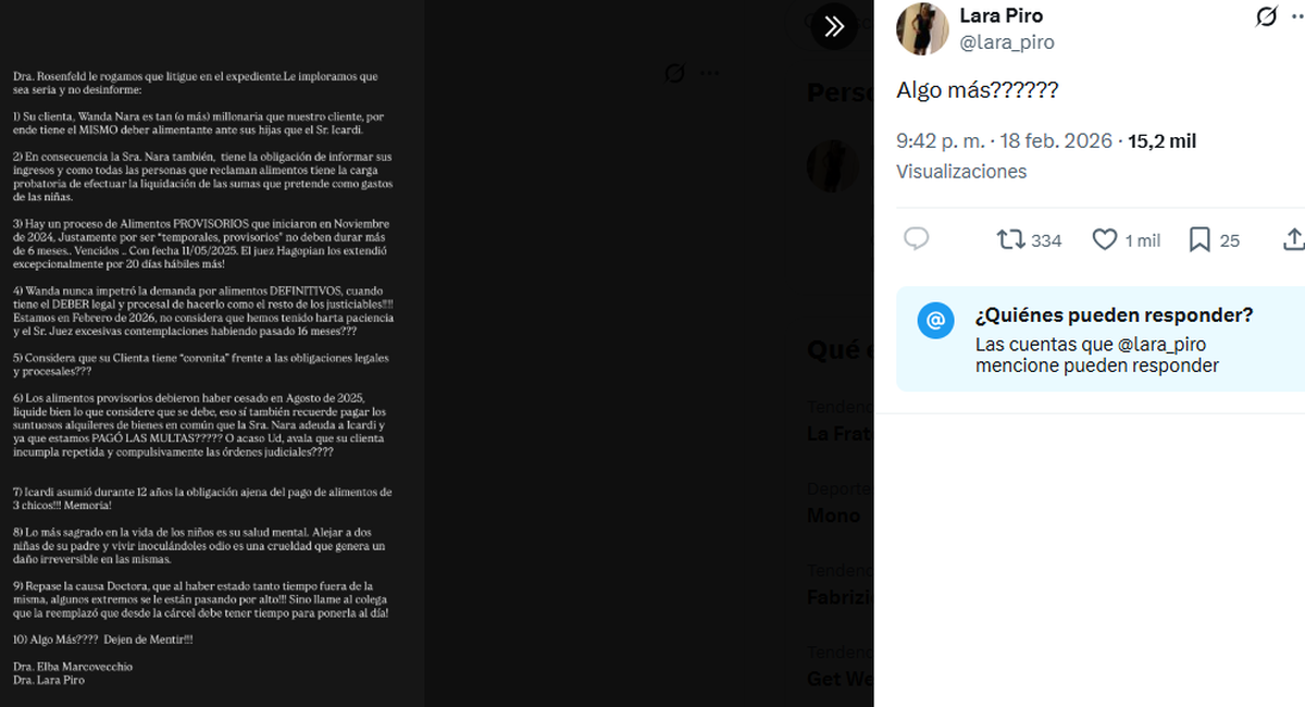 Más tarde, Lara Piro también replicó el posteo en su cuenta de X, dejando en evidencia su coincidencia con la postura de su colega y reforzando públicamente esa misma línea argumental.