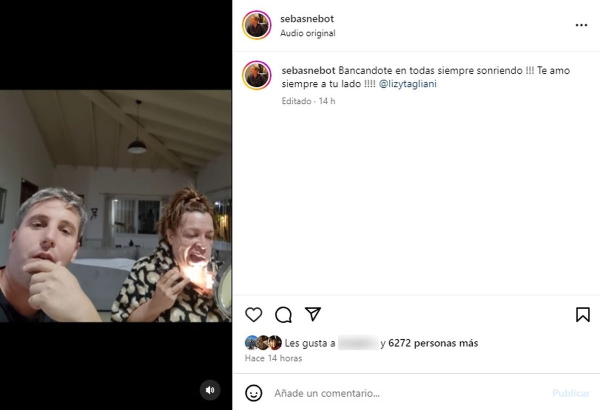 posteo Sebastián Nebot bancando a Lizy Tagliani IG.jpg