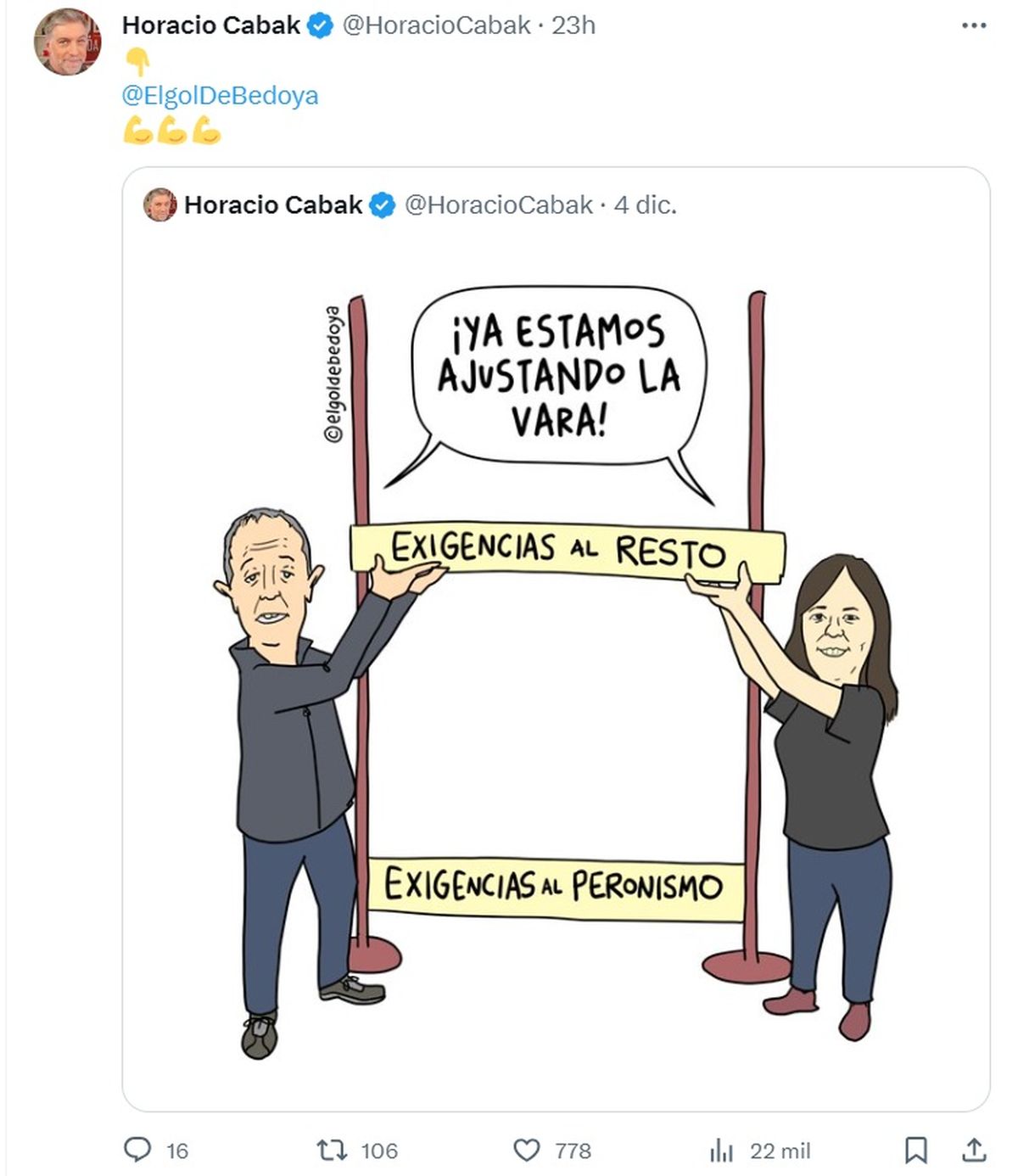 "Mismo tuit. Misma caricatura. Dos respuestas", finalizó picante Horacio Cabak.