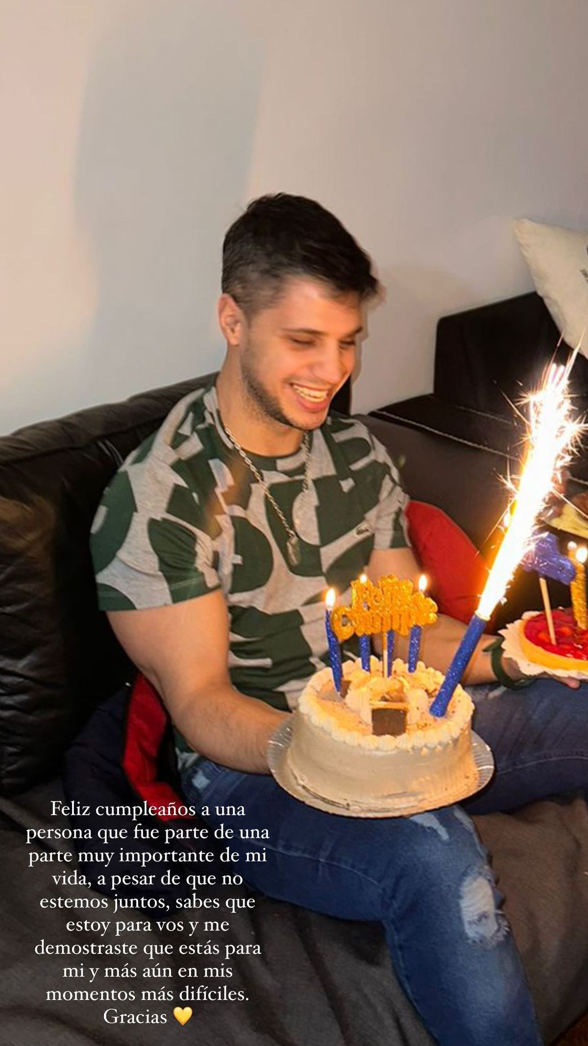 Ahora y a pesar de su ruptura, la exparticipante del reality le dedicó al 'Cone' unas sentidas palabras a través de una historia de Instagram. ‘’Feliz cumpleaños a una persona que fue parte de una parte muy importante de mi vida’’, escribió sobre una foto del cordobés que sostiene una torta de cumpleaños.