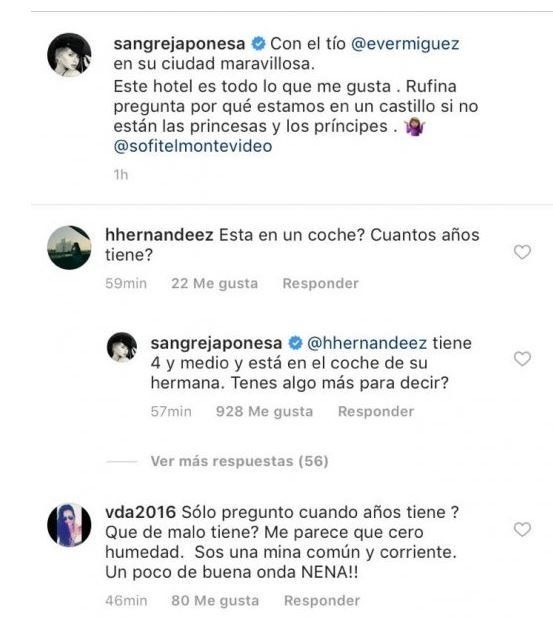 Pero este fin de semana, de viaje por Montevideo (Uruguay), la actriz mostró una foto de su hija mayor, Rufina, que despertó fuertes críticas entre sus seguidores.