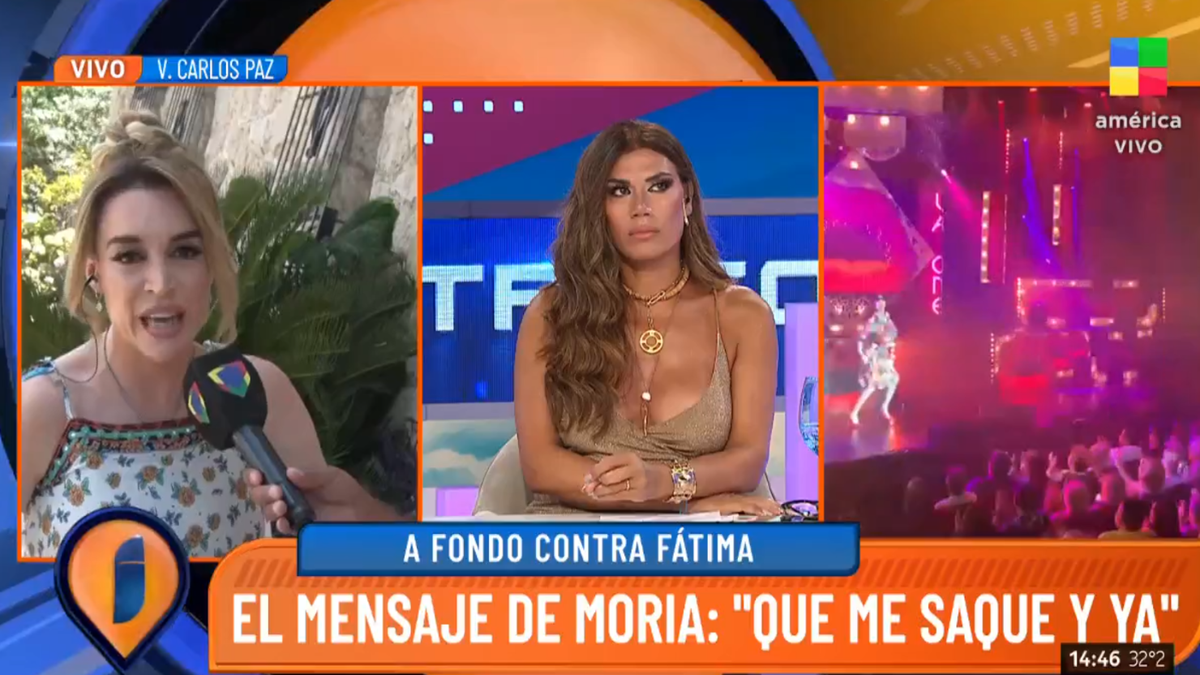 Claro que reacción inmediata de Fátima Florez fue reírse y responderle a cámara, disparando: "Moria, dejate de joder, andá a laburar y ganate la plata". Al tiempo que agregó, sin tomar en serio el mensaje de la diva, "Moria es buscona y como estábamos hablando mucho de Mirtha Legrand y Susana Giménez, ella se pone celosa. (…) Le puedo cambiar una letra, y ya es Moira".