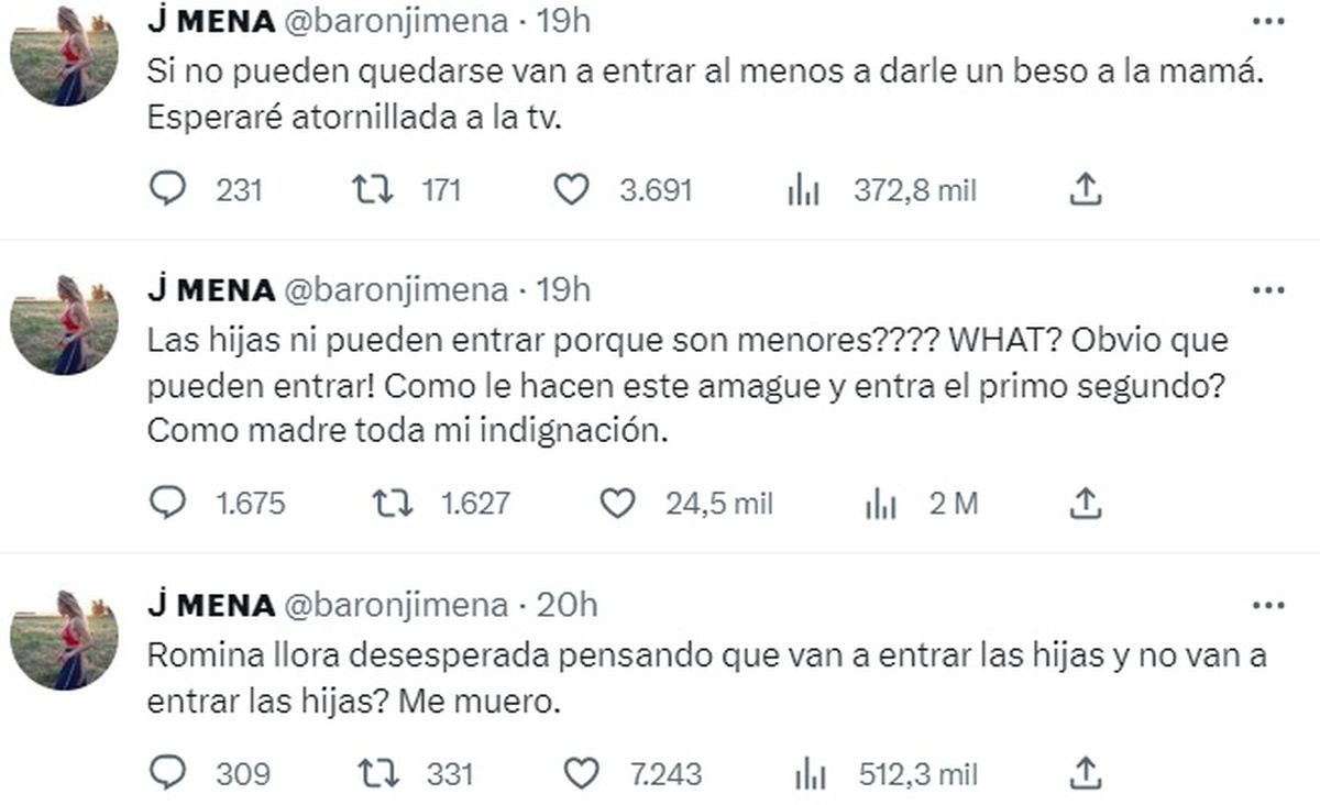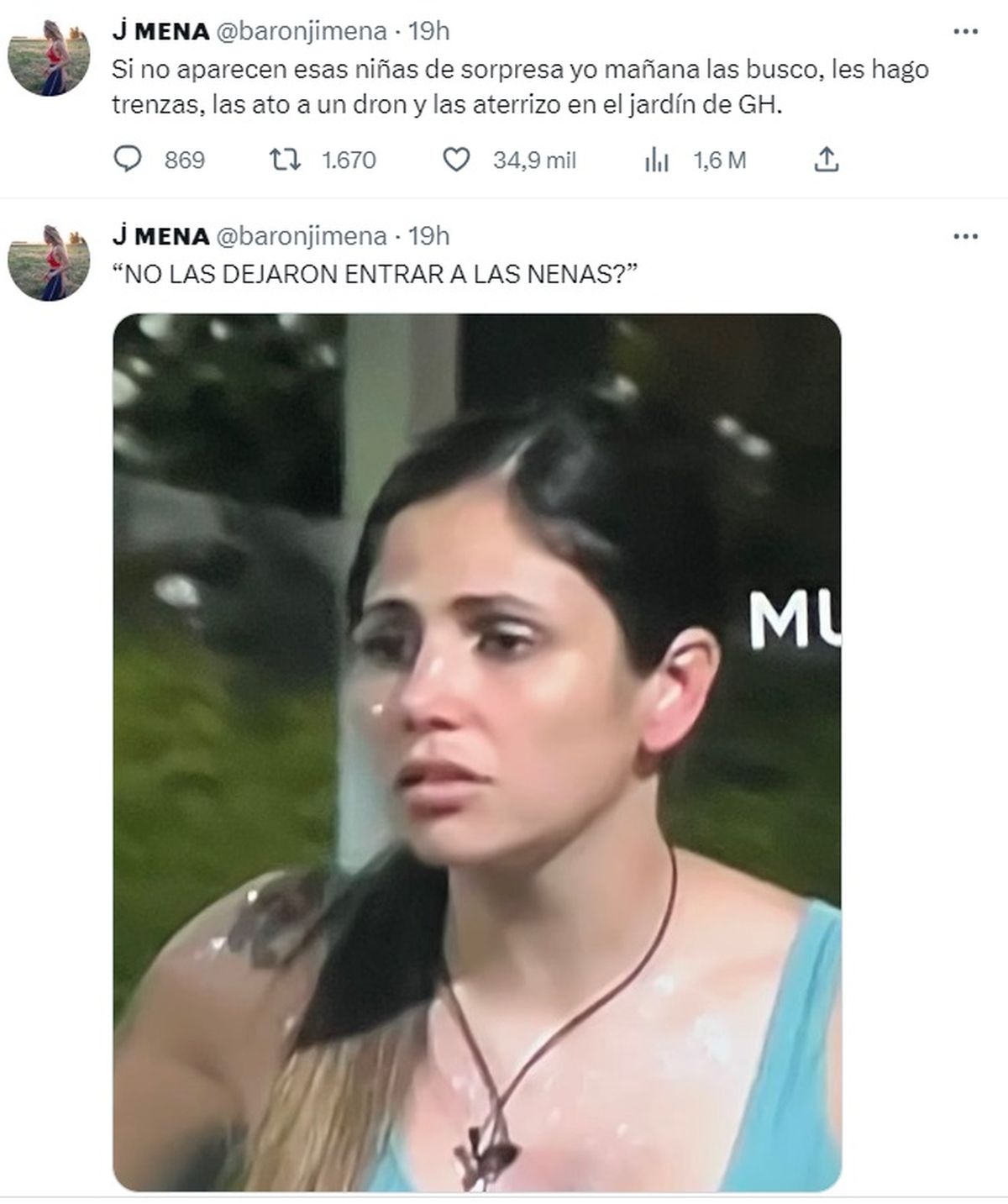 Y finalmente, vino el reclamo a la producción de GH: "Si no aparecen esas niñas de sorpresa, yo mañana las busco, les hago trenzas, las ato a un dron y las aterrizo en el jardín de GH".