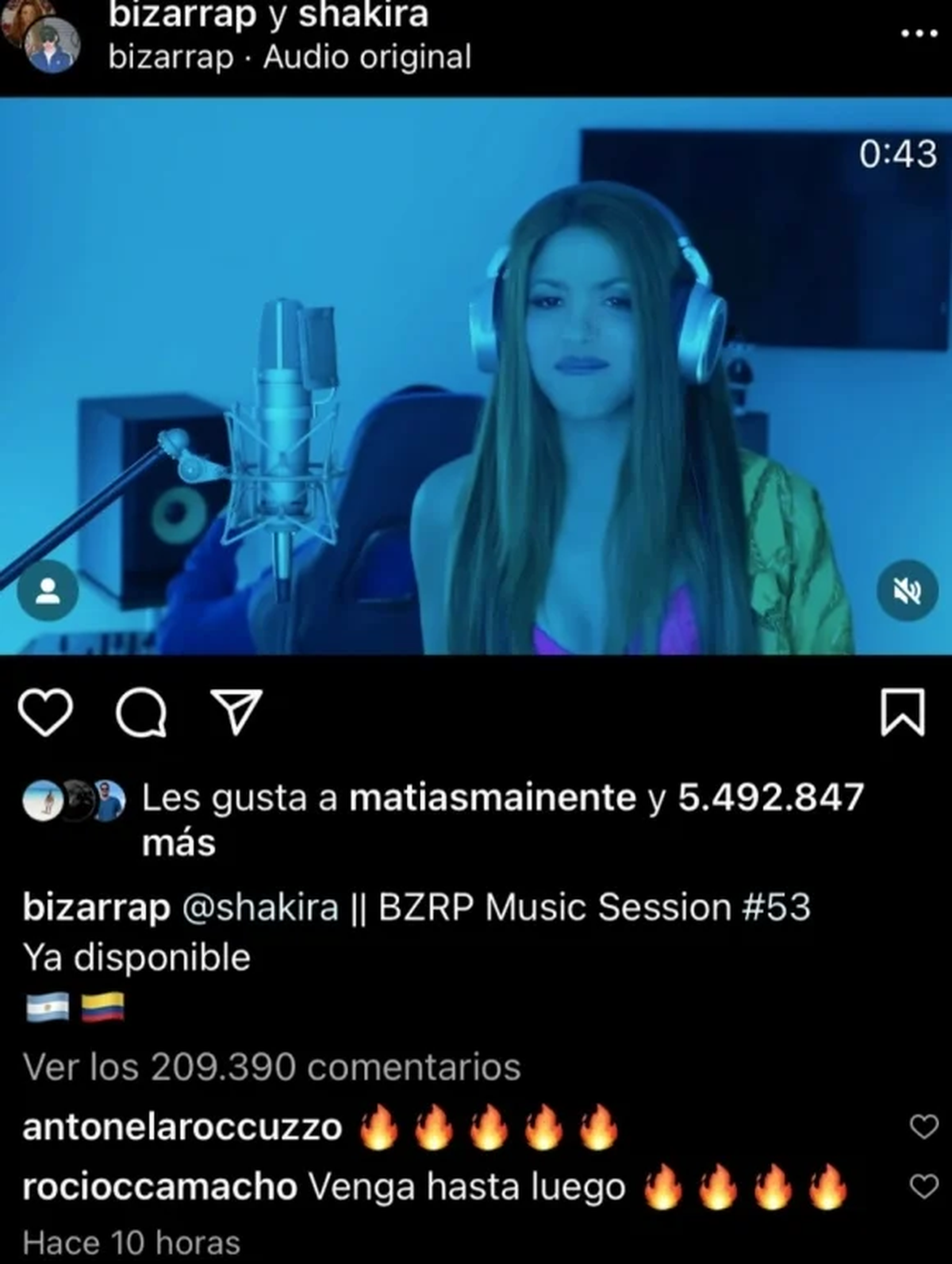 La botinera apoyó públicamente a Shakira, le dejó "fueguitos" en los comentarios del video en dicha red social. Al parecer, la rosarina está del lado de la colombiana en esta guerra.